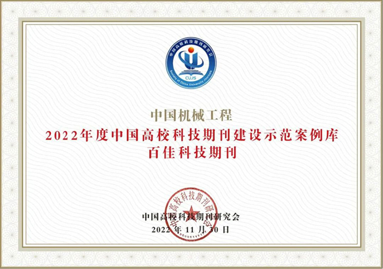 2022年12月1日,中国高校科技期刊研究会发布了2022年度中国高校科技期刊建设示范库·杰出/百佳/优秀科技期刊入库案例名单,《中国机械工程》获评2022年度中国高校科技期刊建设示范案例库·百佳科技期刊。这是本刊继2021年入选“中国高校科技期刊建设示范案例库·编辑案例”、编辑应邀在中国高校科技期刊研究会第24、25次年会做专题报告之后,再次获得此类殊荣。