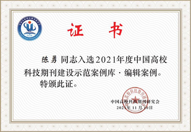 “2022年度中国高校科技期刊建设示范案例库·杰出/百佳/优秀科技期刊”是在各高校科技期刊出版单位推荐的基础上,在全国1600多种高校科技期刊中,通过对国内外相关数据库和评价机构的评价、计量结果等第三方客观数据进行加权计算,再经过反复审核、确认和公示等程序,最终确定示范案例共479个,其中杰出科技期刊案例30个、百佳科技期刊案例172个、优秀科技期刊案例277个。